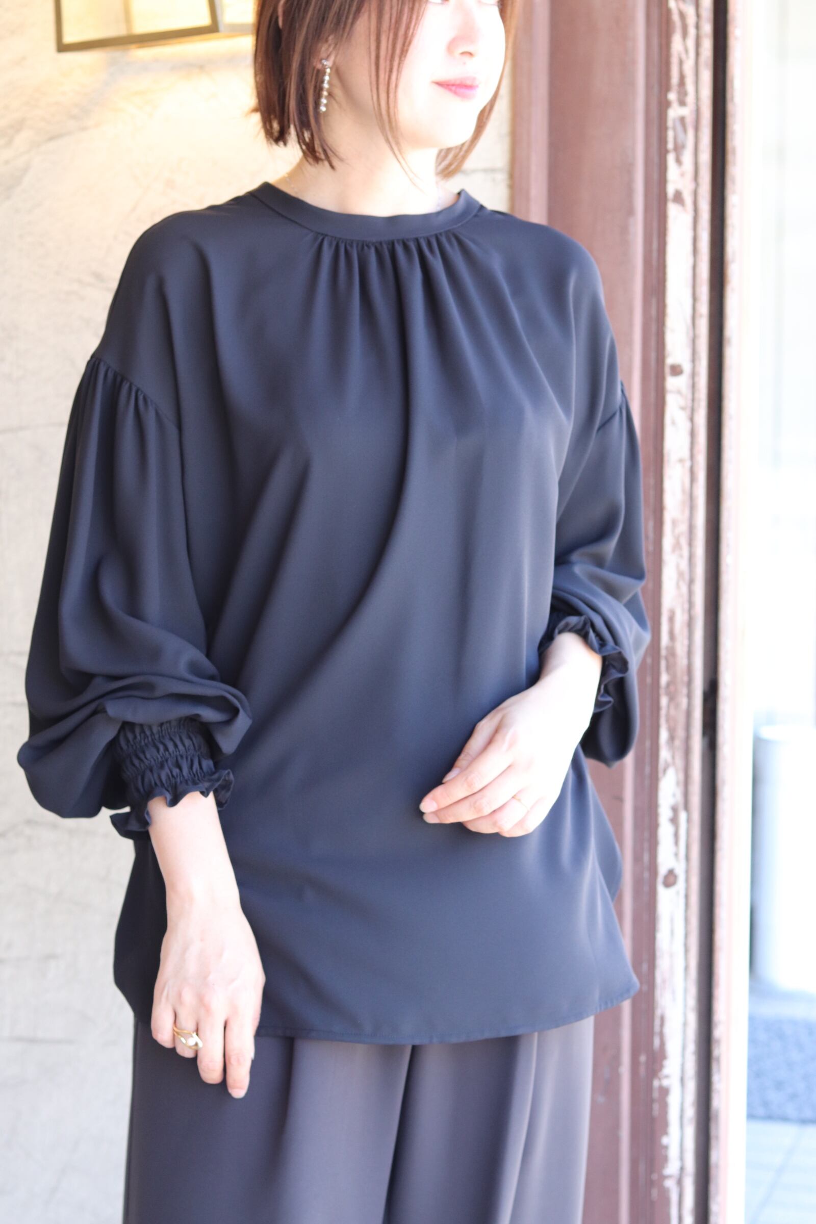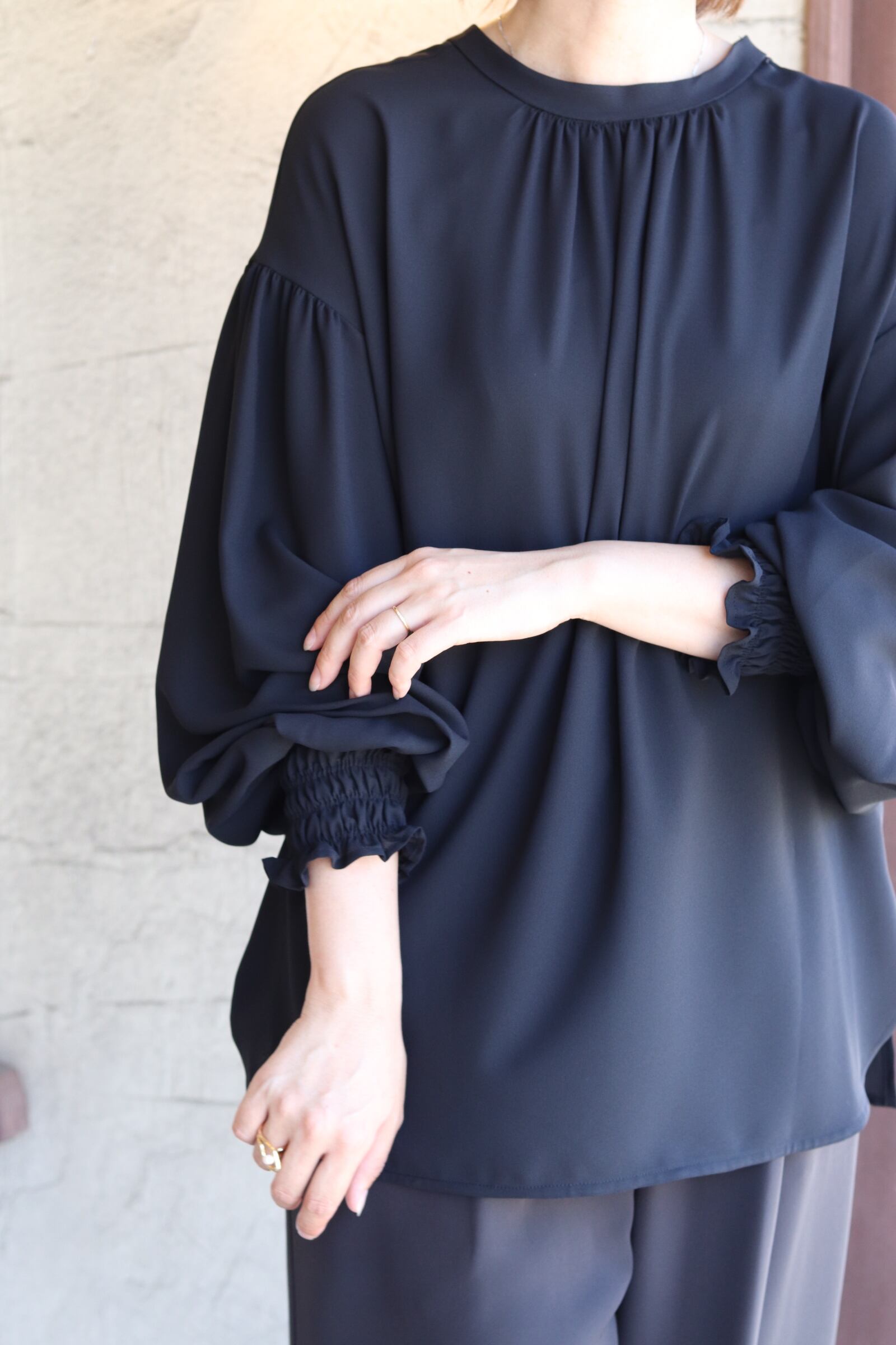 マットな表面感が上品な印象を与え、軽くしなやかなストレッチ性で着心地抜群です。首元のリボンタイは、結び方ひとつで印象チェンジ。袖に分量感を持たせており、フェミニンな雰囲気をプラスしてくれます。前後着用可能です!