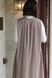 ストレッチ性と接触冷感が特徴、滑らかな肌触りのストレッチツイル。前後2WAYで着用でき、首元の印象で違った雰囲気を楽しめます。落ち感のある生地が上品なシルエットを描き、1枚で大人っぽく洗練された印象に仕上げます。インナー次第でロングシーズン活躍する万能アイテムです。