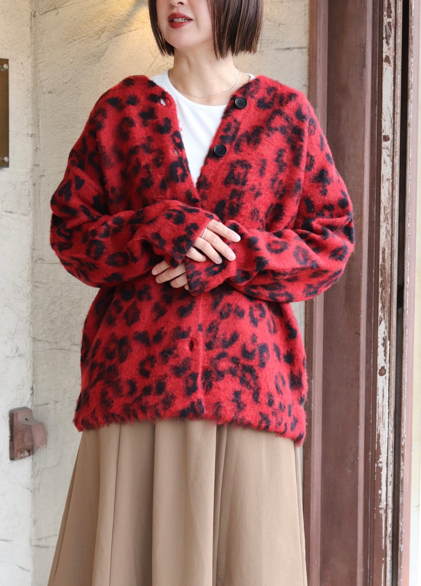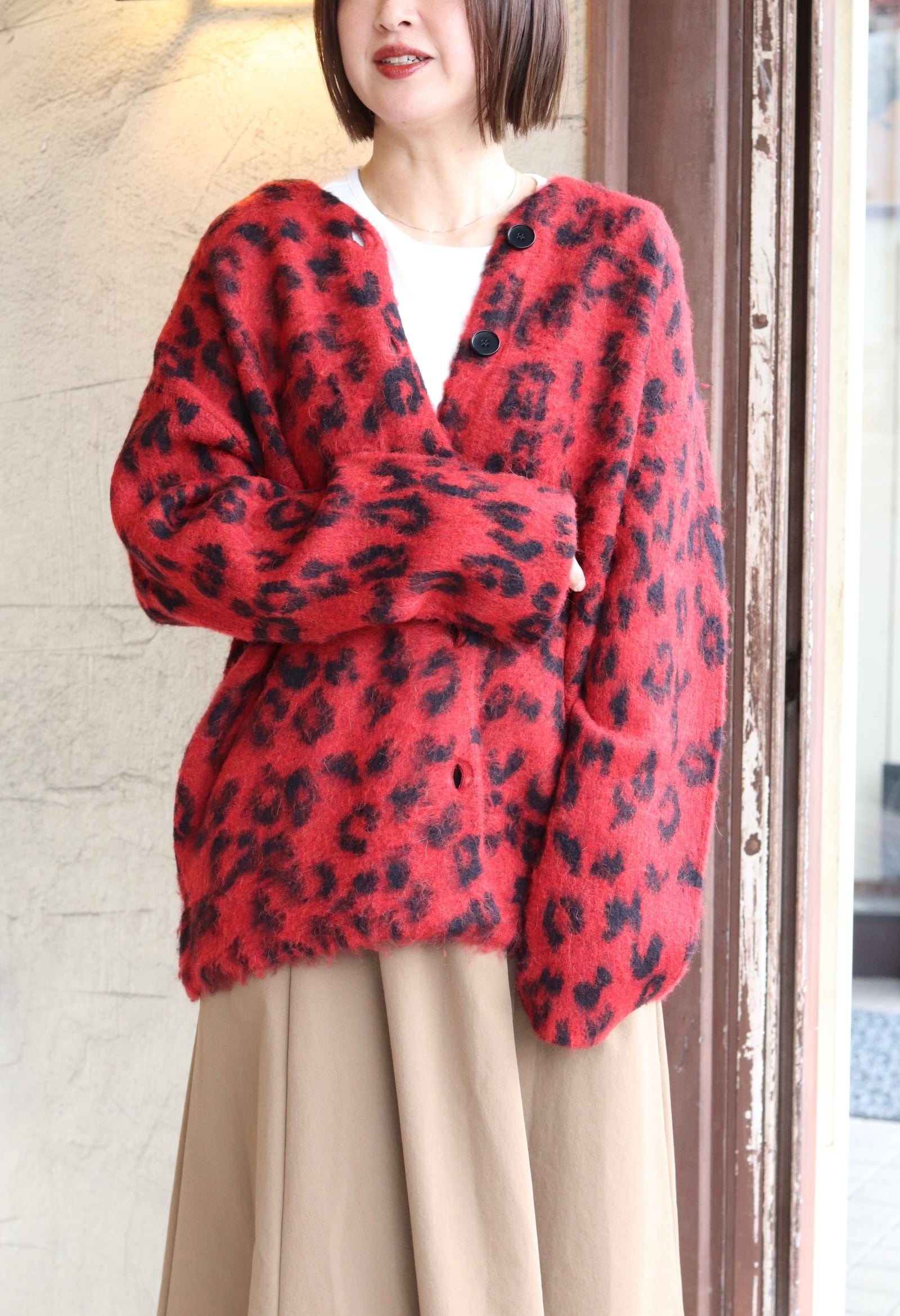 レオパード柄Vネックカーディガン