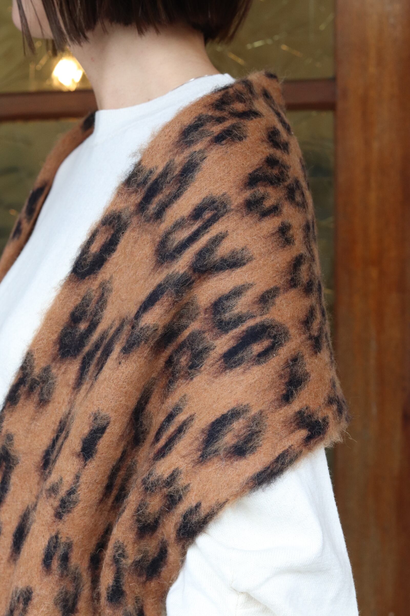 レオパード柄に編みたて起毛加工を施してあります。