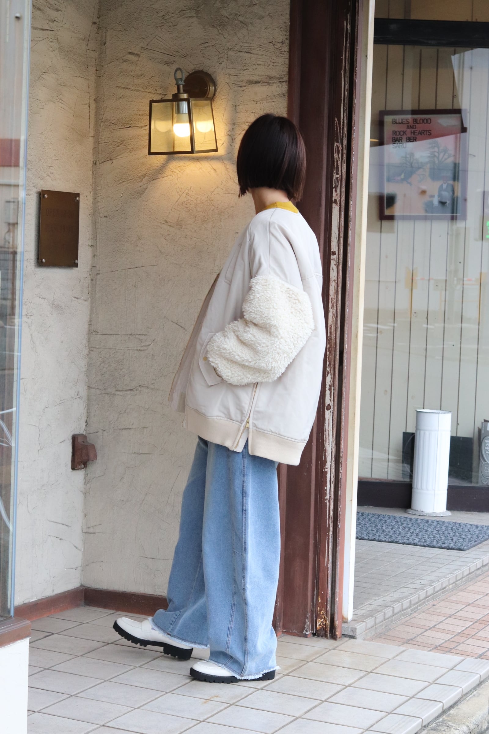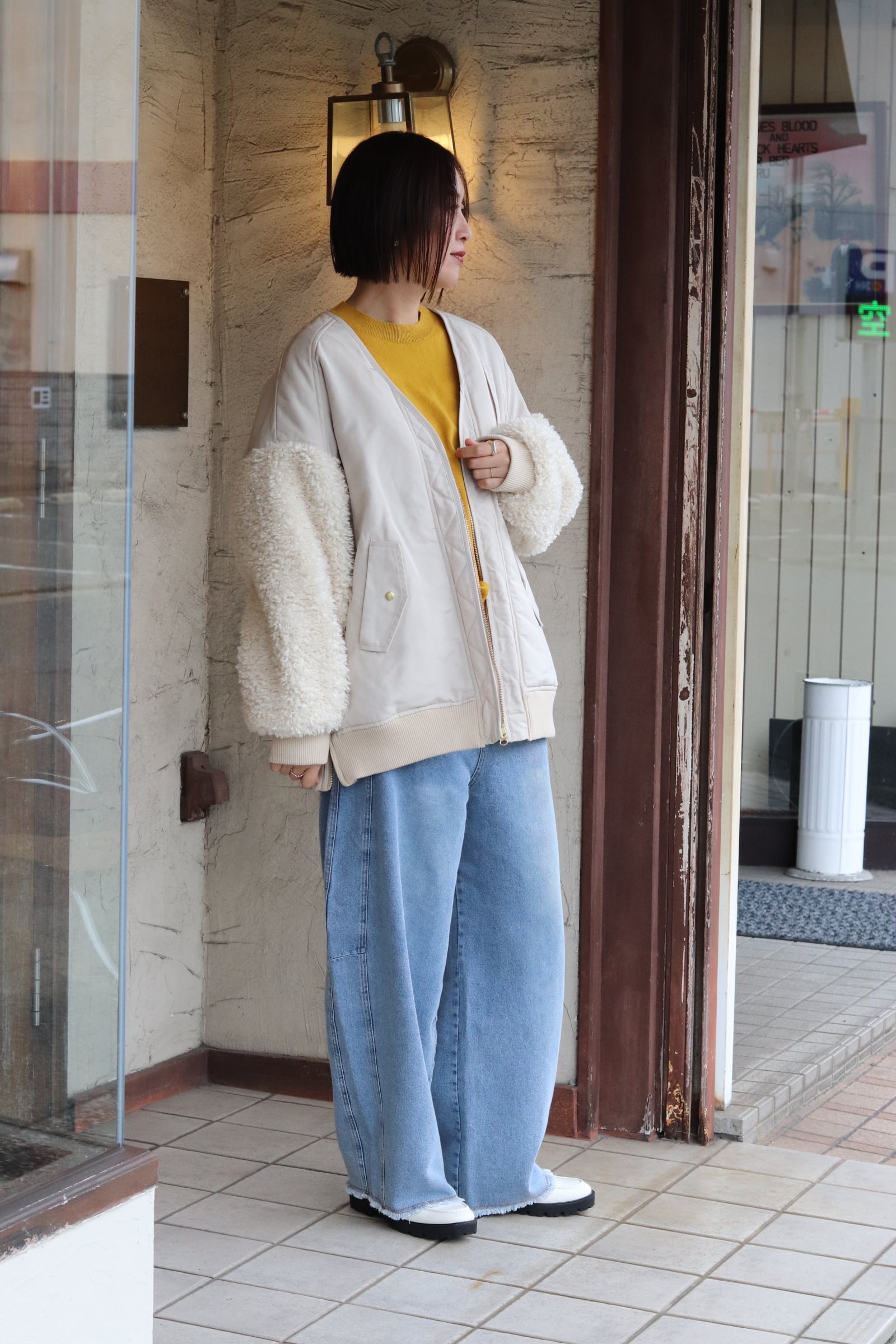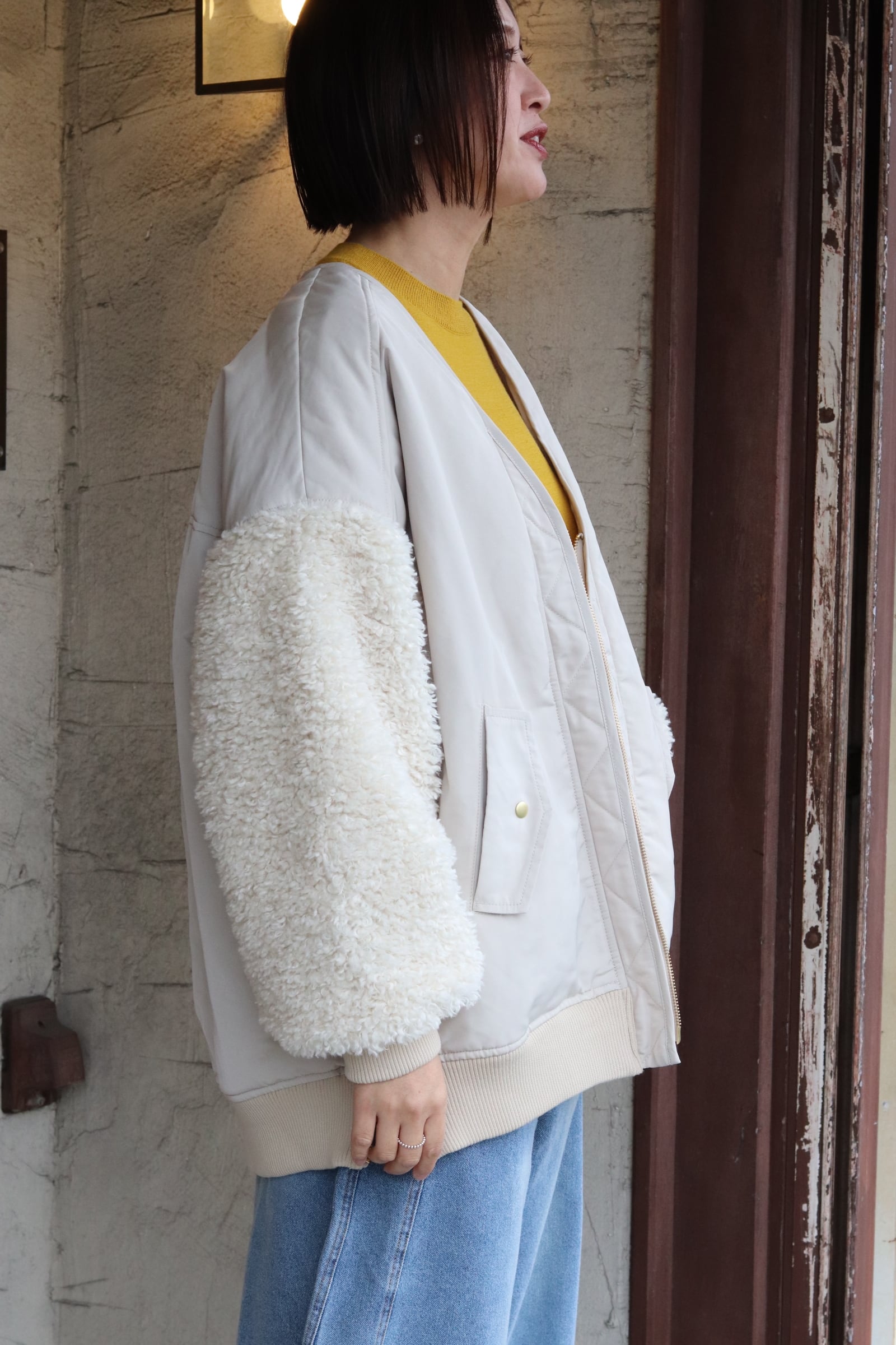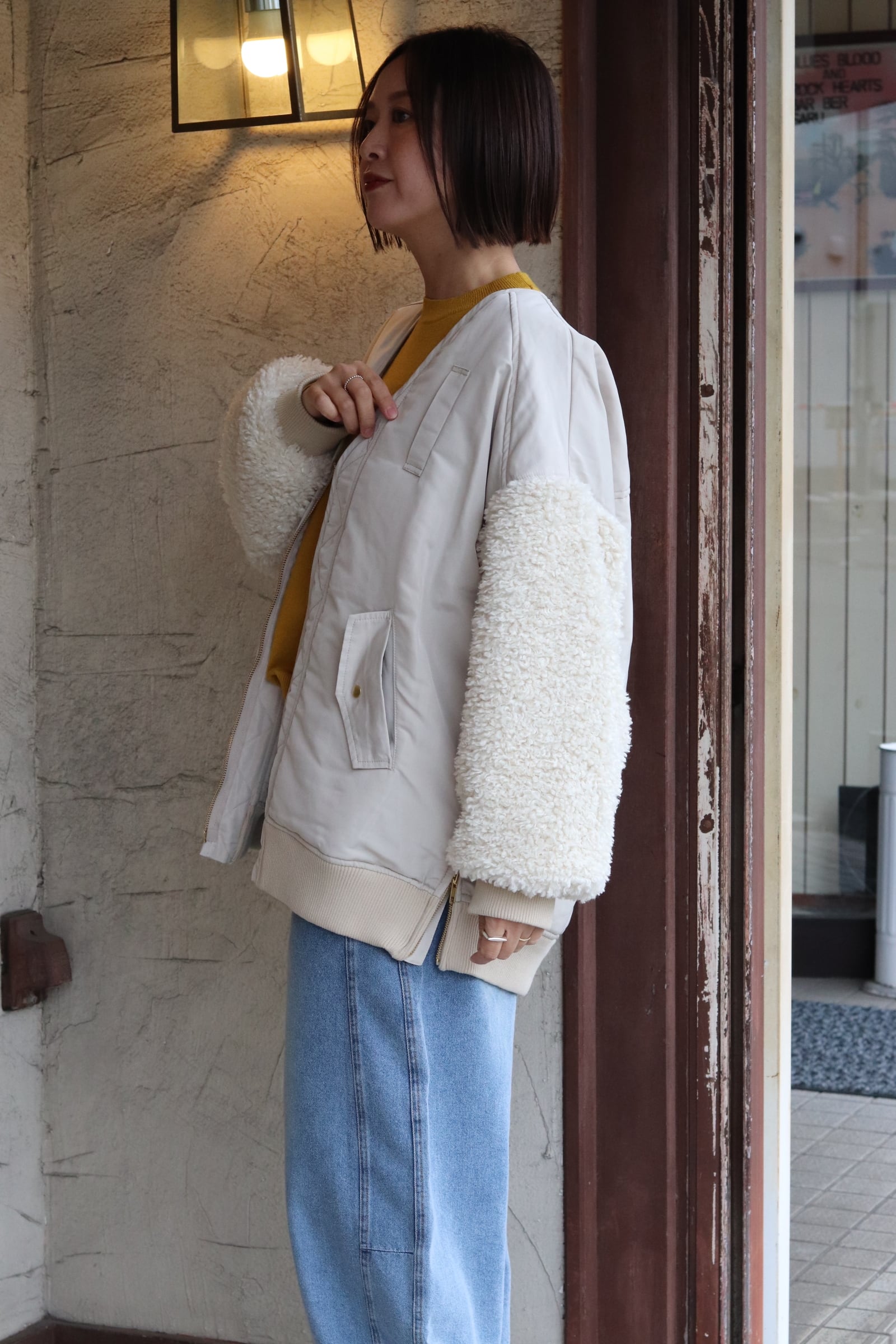 カジュアルな雰囲気の中綿ブルゾンにカーリーボアの袖がつくことで表情豊かなデザインに仕上げています。Vネックラインですっきり見えしつつ、ボアのぬくもりで暖かくシーズンらしい着こなしが楽しめる一枚。リラックス感のあるシルエットでインナーも重ねやすく、デイリーからちょっとしたお出かけまで幅広く活躍します。