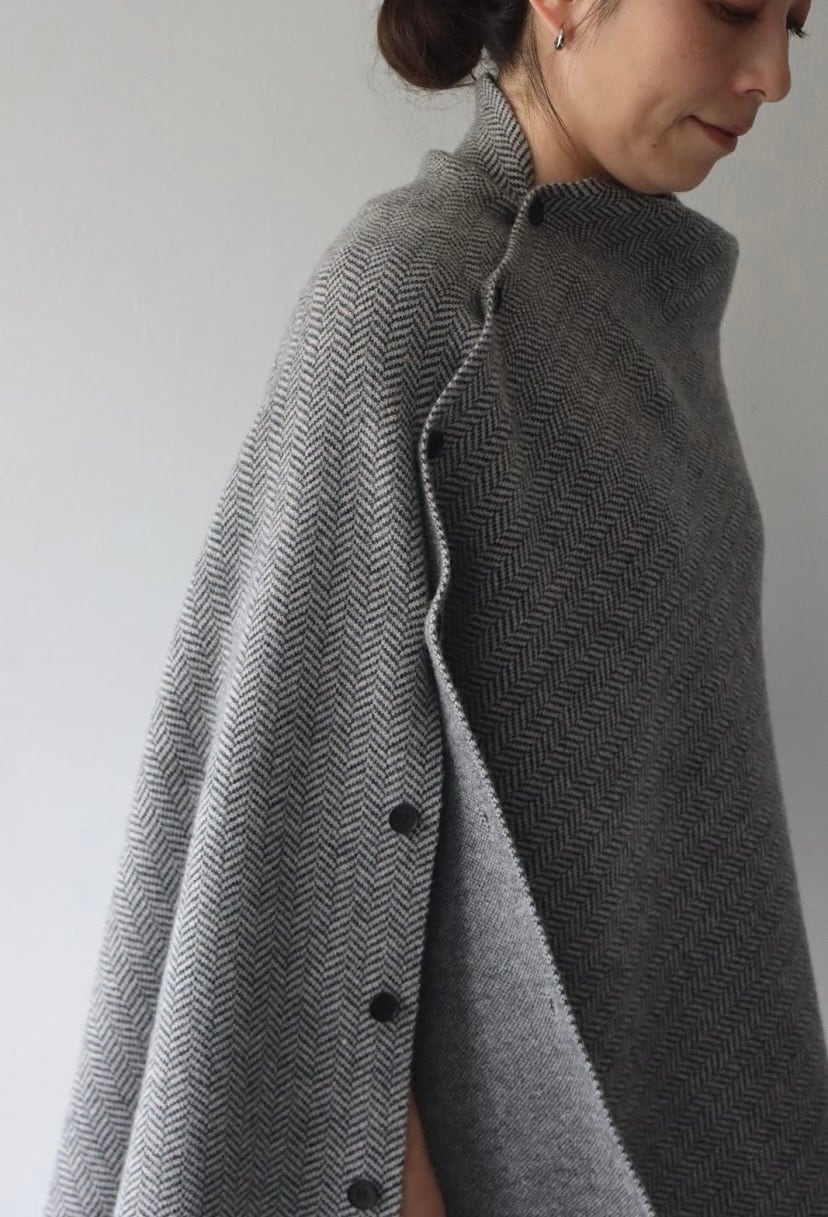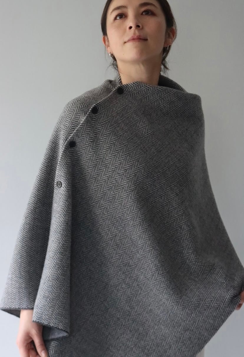 EMMACULATE ヘリンボーン柄ボタン付きストール