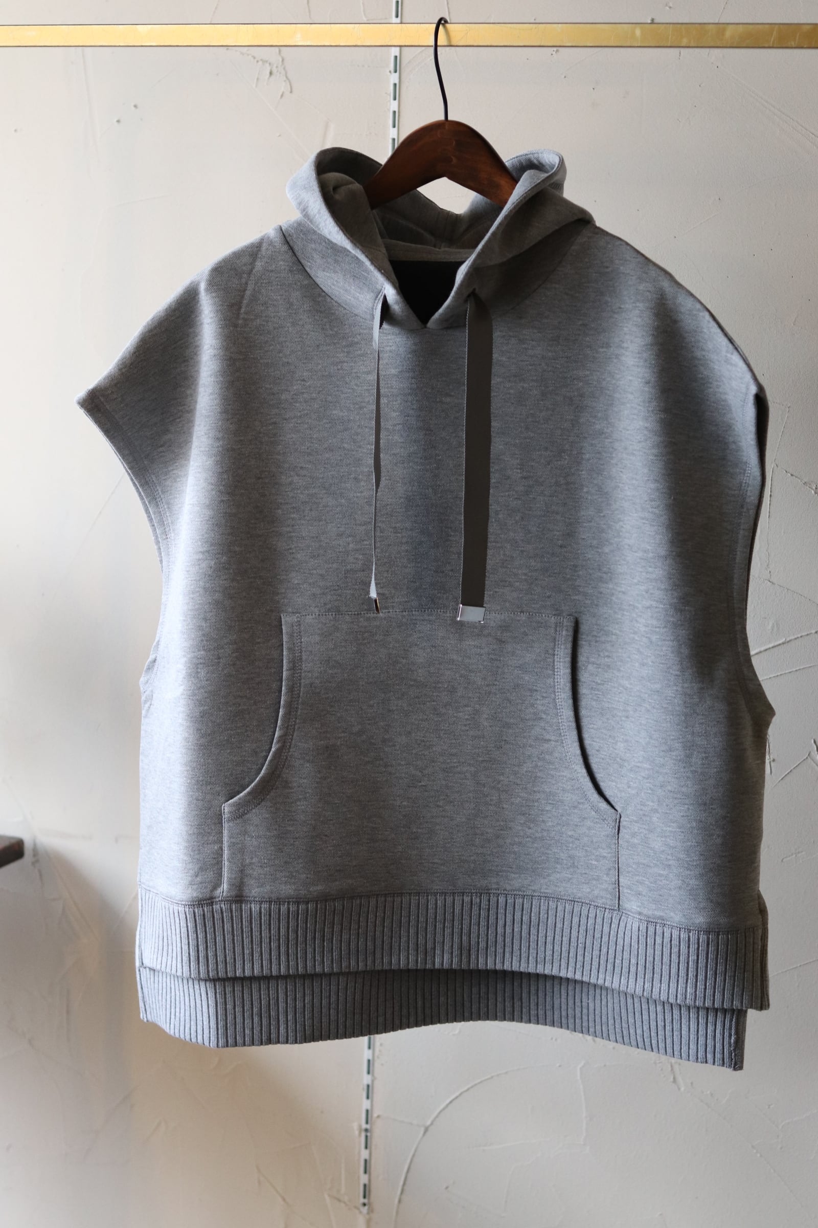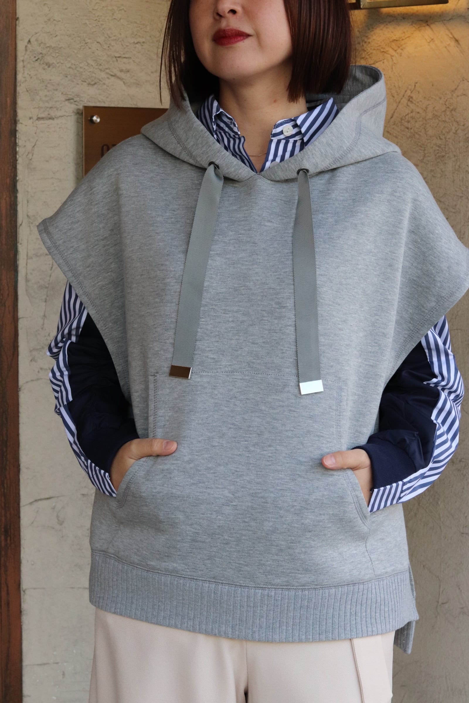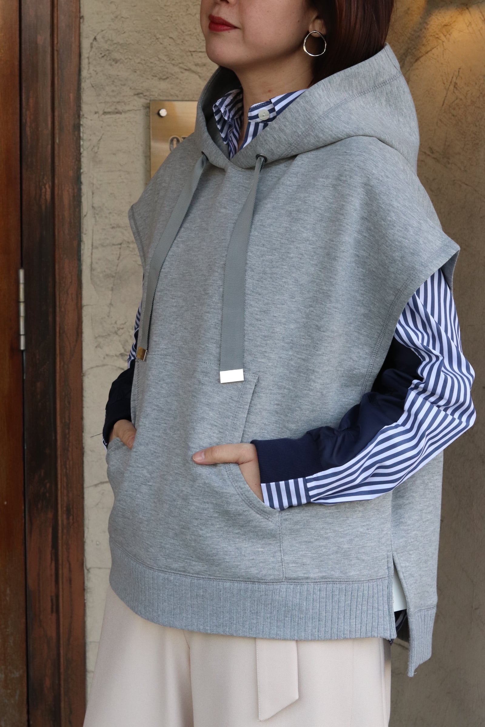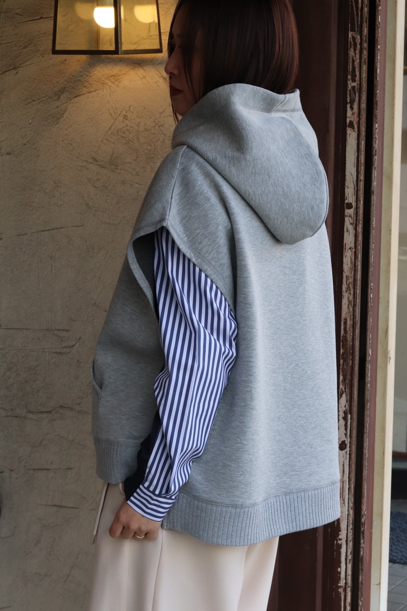 肌触りの良いふわっとしたボンディングのカットソー素材を使用したフードベスト。