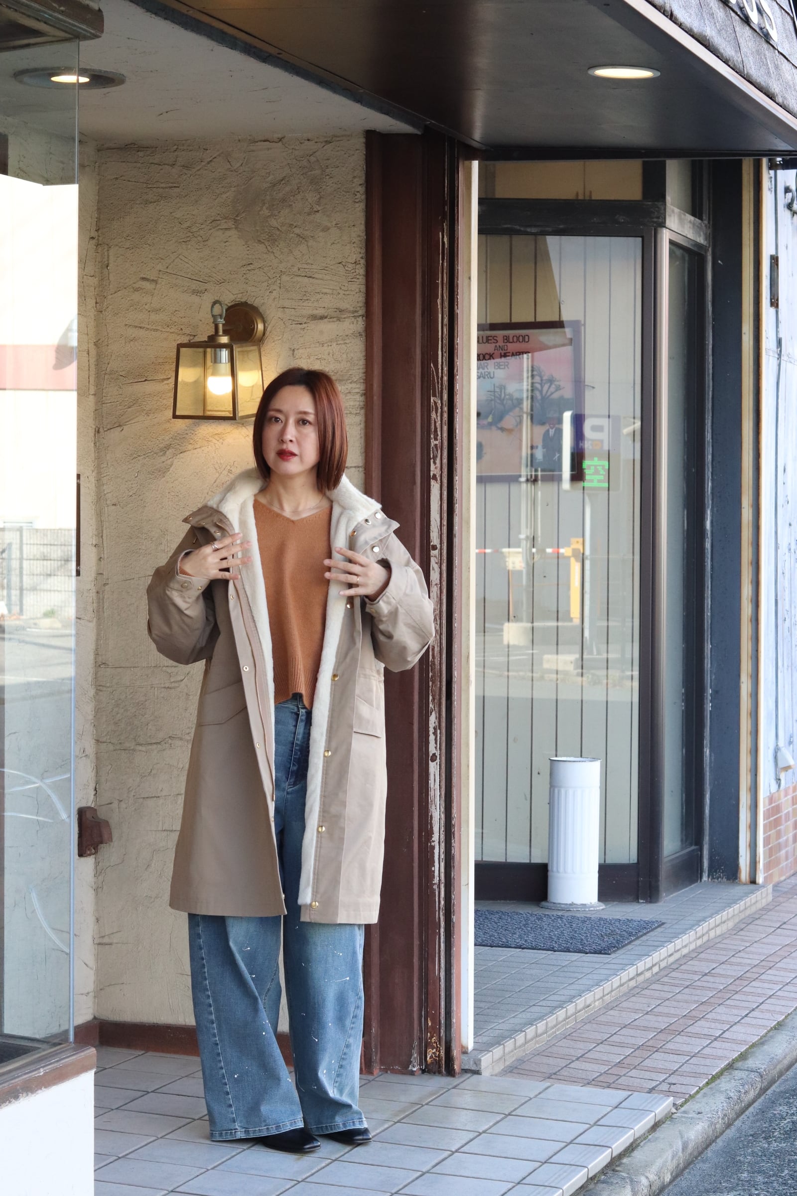 裏地にエコファーを施したハーフコート。
