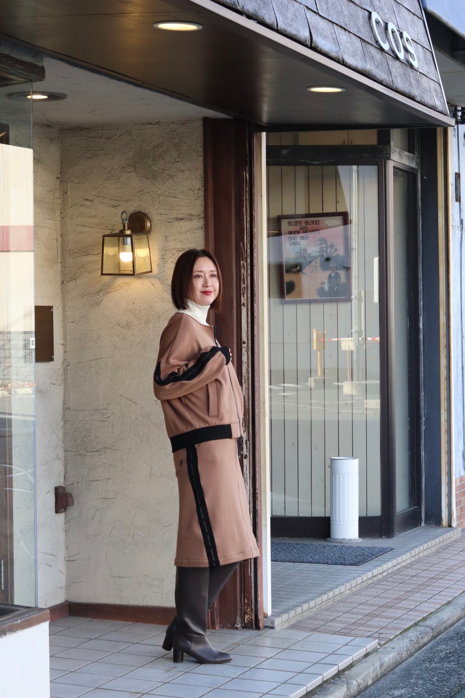 ボンバー素材のアウターは上からコートも羽織れるので◎
