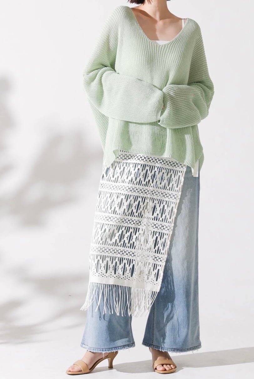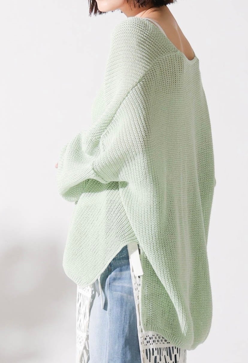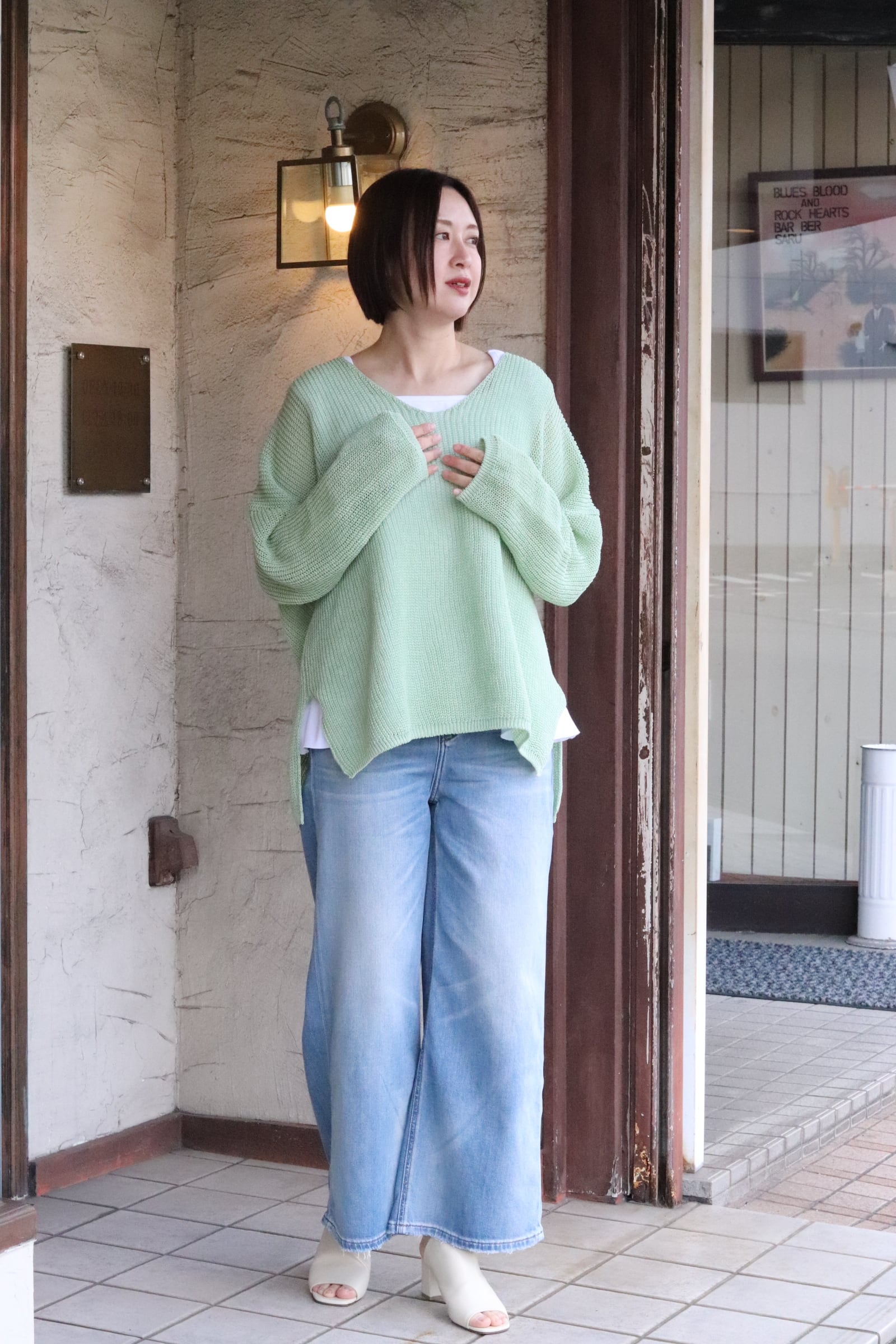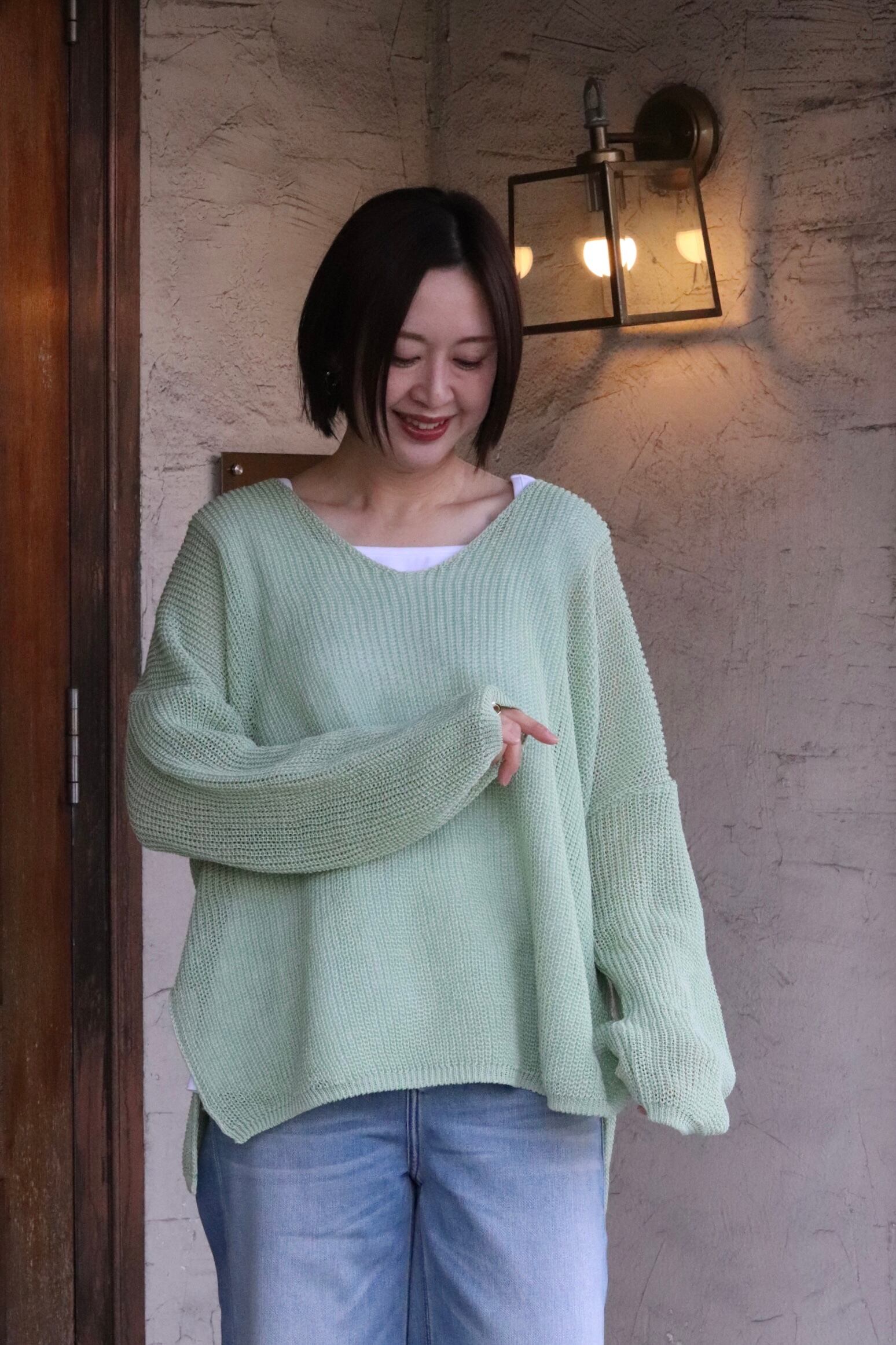 5G畦編みギマコットン Uネックプルオーバー(T261-88004)