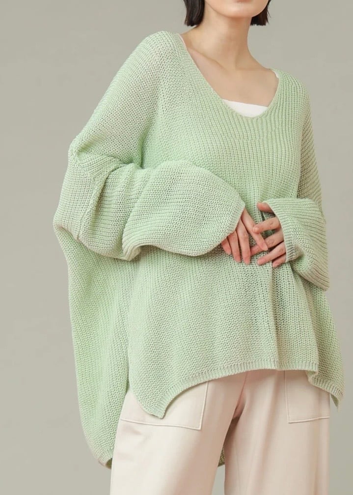 シャリ感のあるギマコットンを使用した、軽やかな着心地が魅力のニットプルオーバー。
