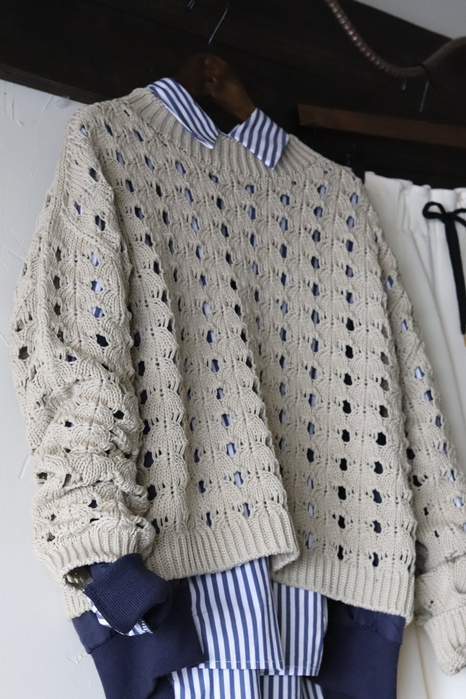 透かし柄ニットプルオーバー
