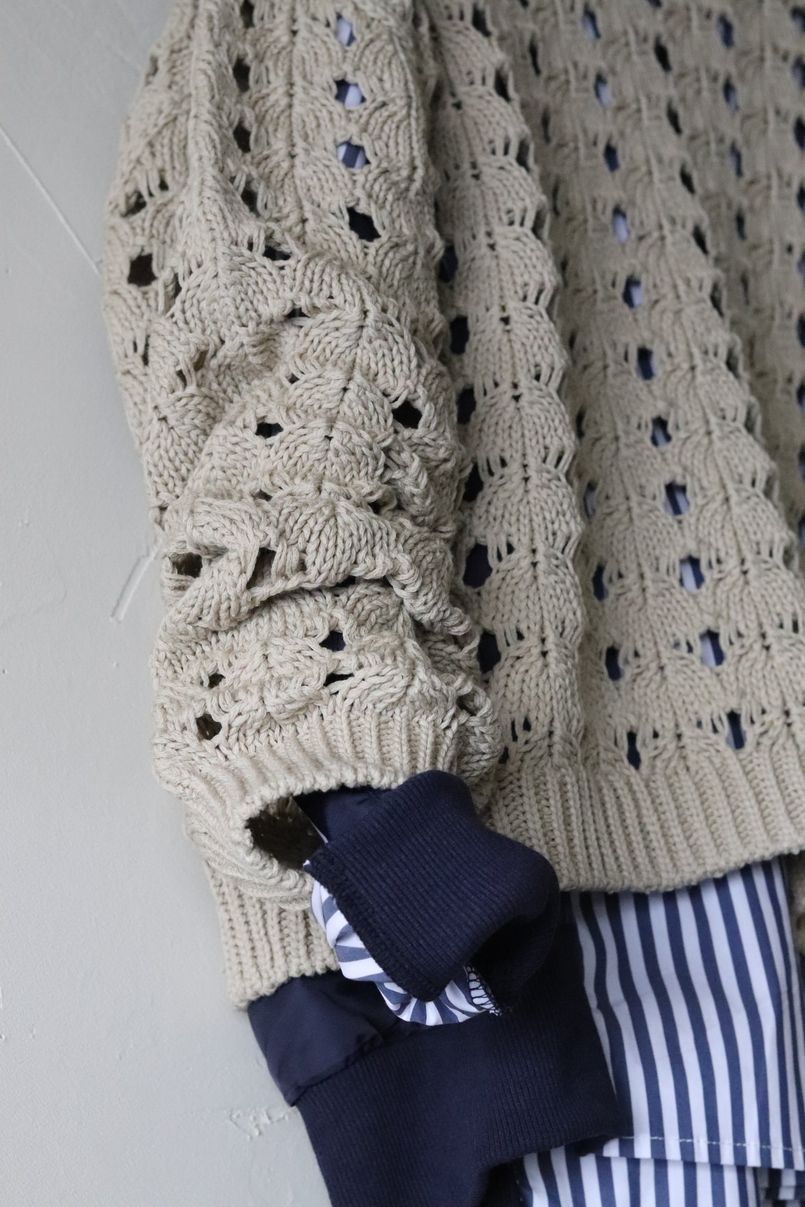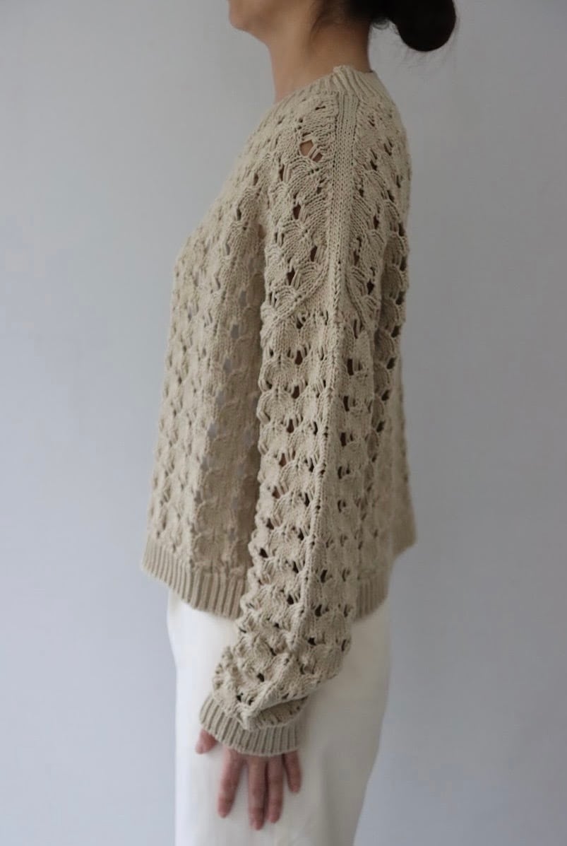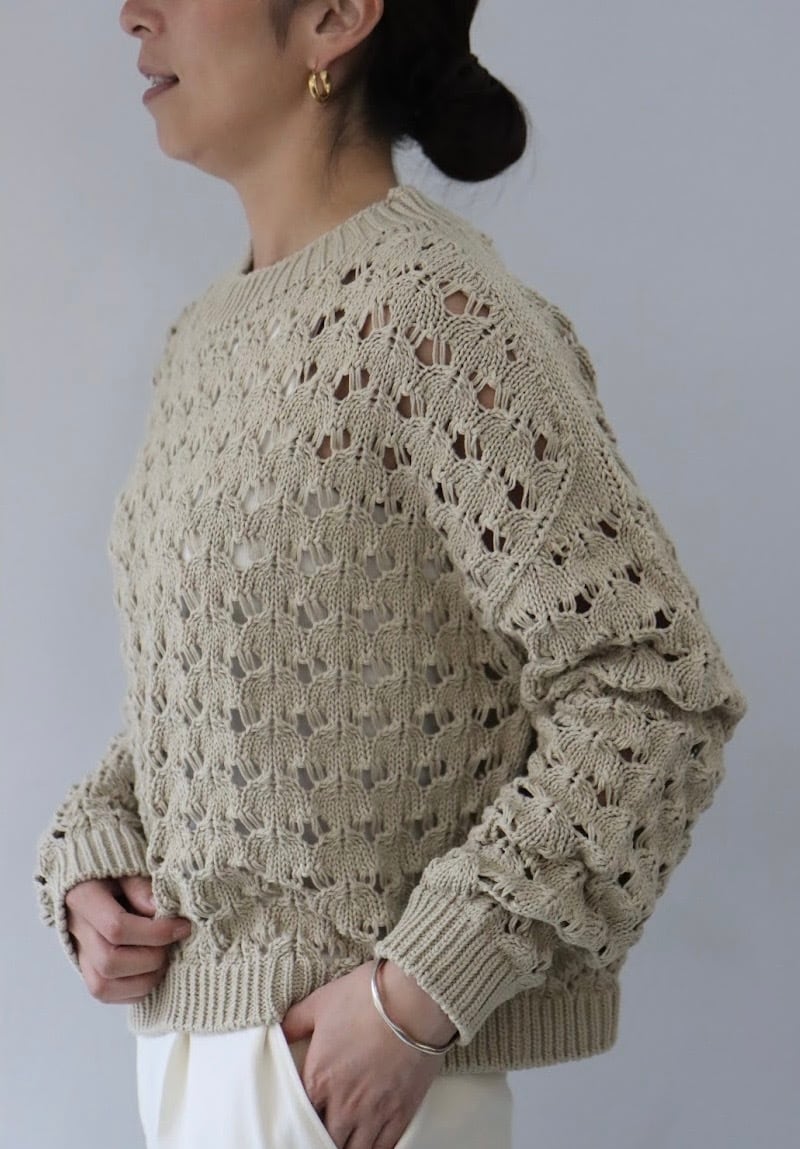 ホールガーメントなので脇にハギがなく透かし柄もすっきりとした印象です。