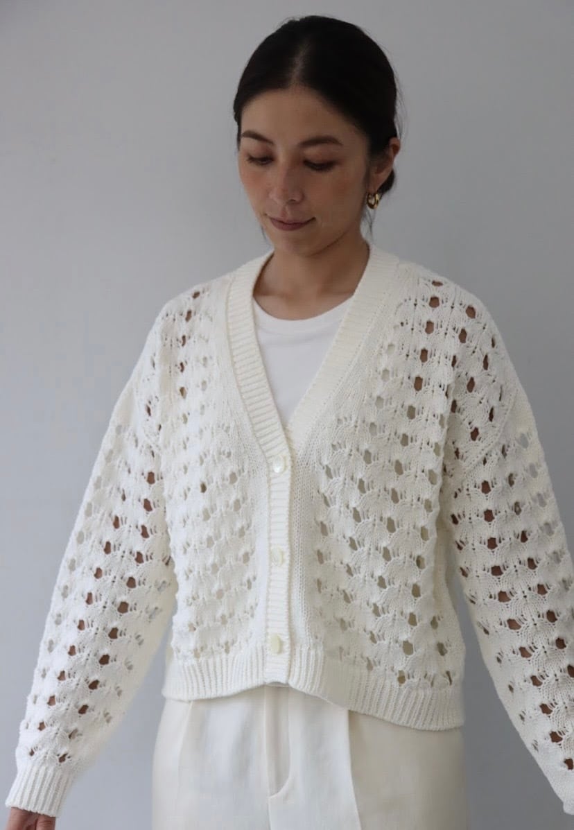 透かし柄Vネックカーディガン!