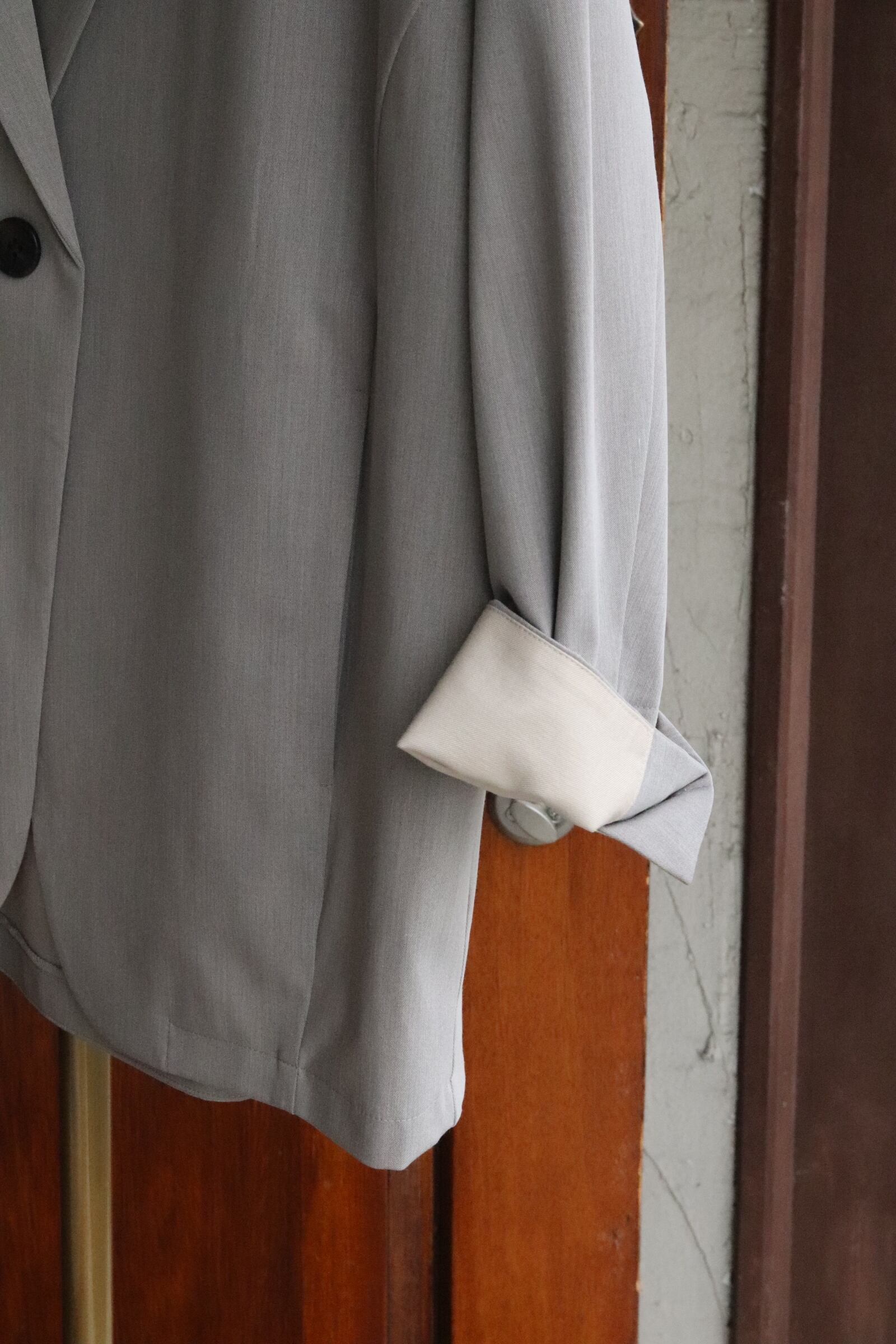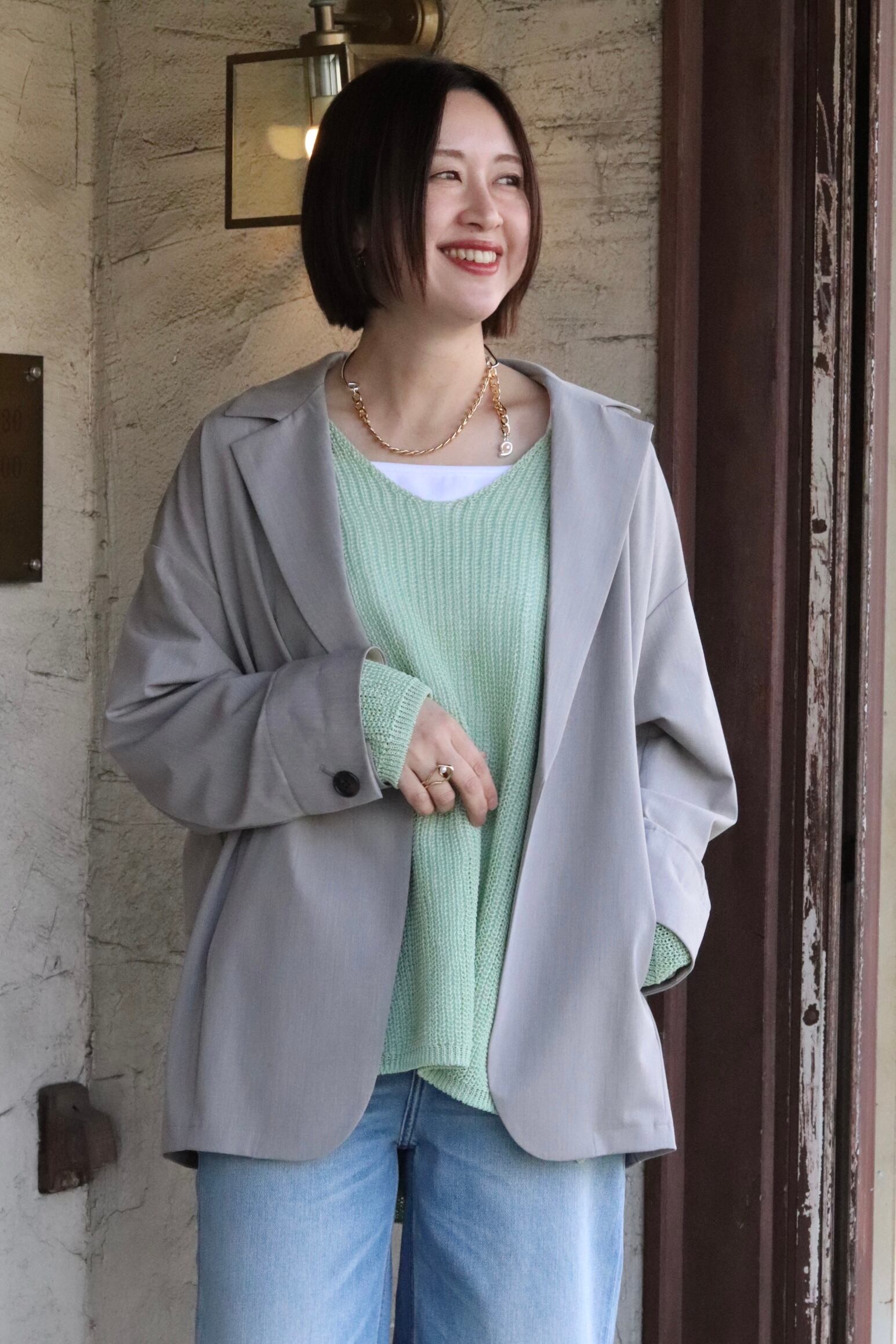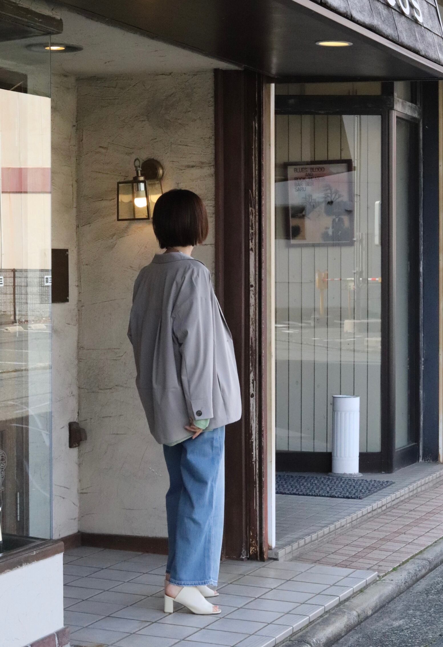 ヒップが隠れる丈感で、羽織るだけで今っぽいバランスに仕上がります。お袖を曲げると裏地がチラ見えでよりカジュアルな印象に。同素材のパンツと合わせれば、セットアップとしてオンスタイルにも対応。Tシャツやデニムに合わせて抜け感のある着こなしも楽しめます。