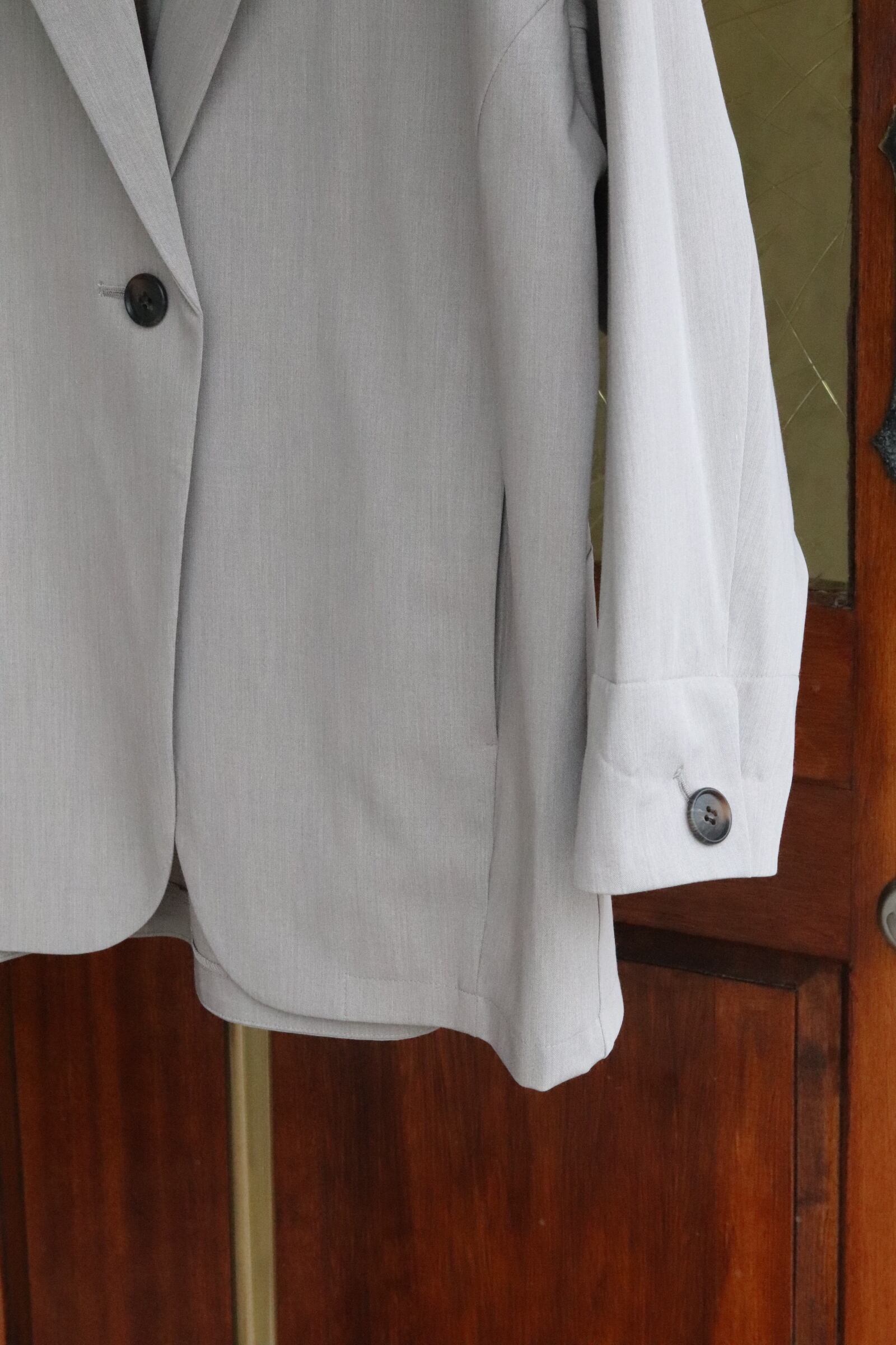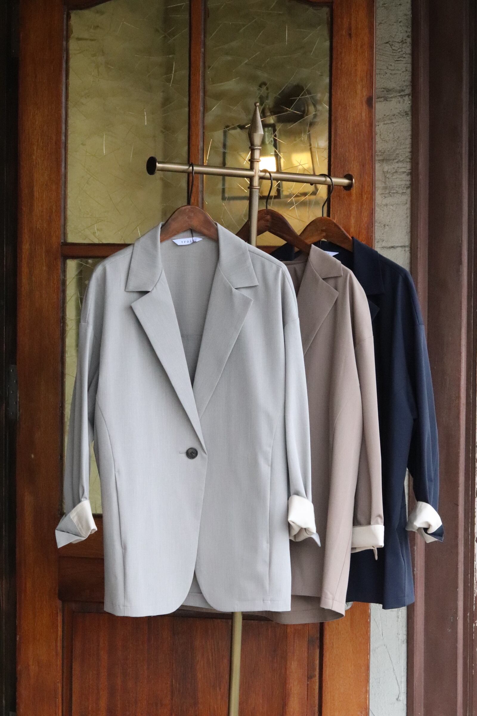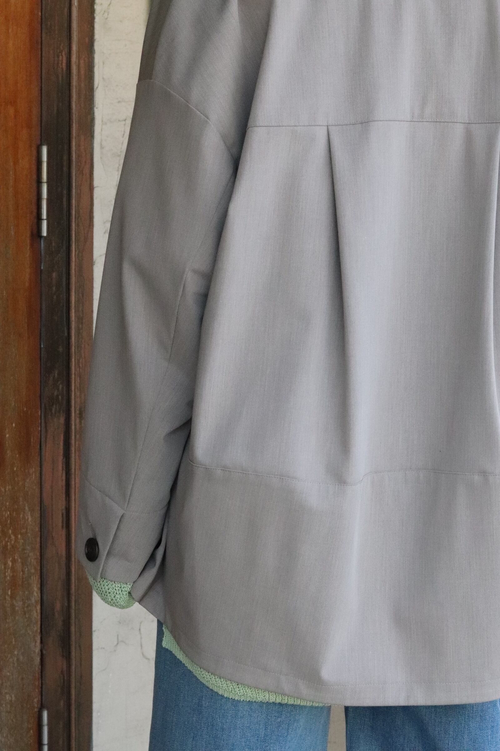 ヒップが隠れる丈感で、羽織るだけで今っぽいバランスに仕上がります。お袖を曲げると裏地がチラ見えでよりカジュアルな印象に。同素材のパンツと合わせれば、セットアップとしてオンスタイルにも対応。Tシャツやデニムに合わせて抜け感のある着こなしも楽しめます。