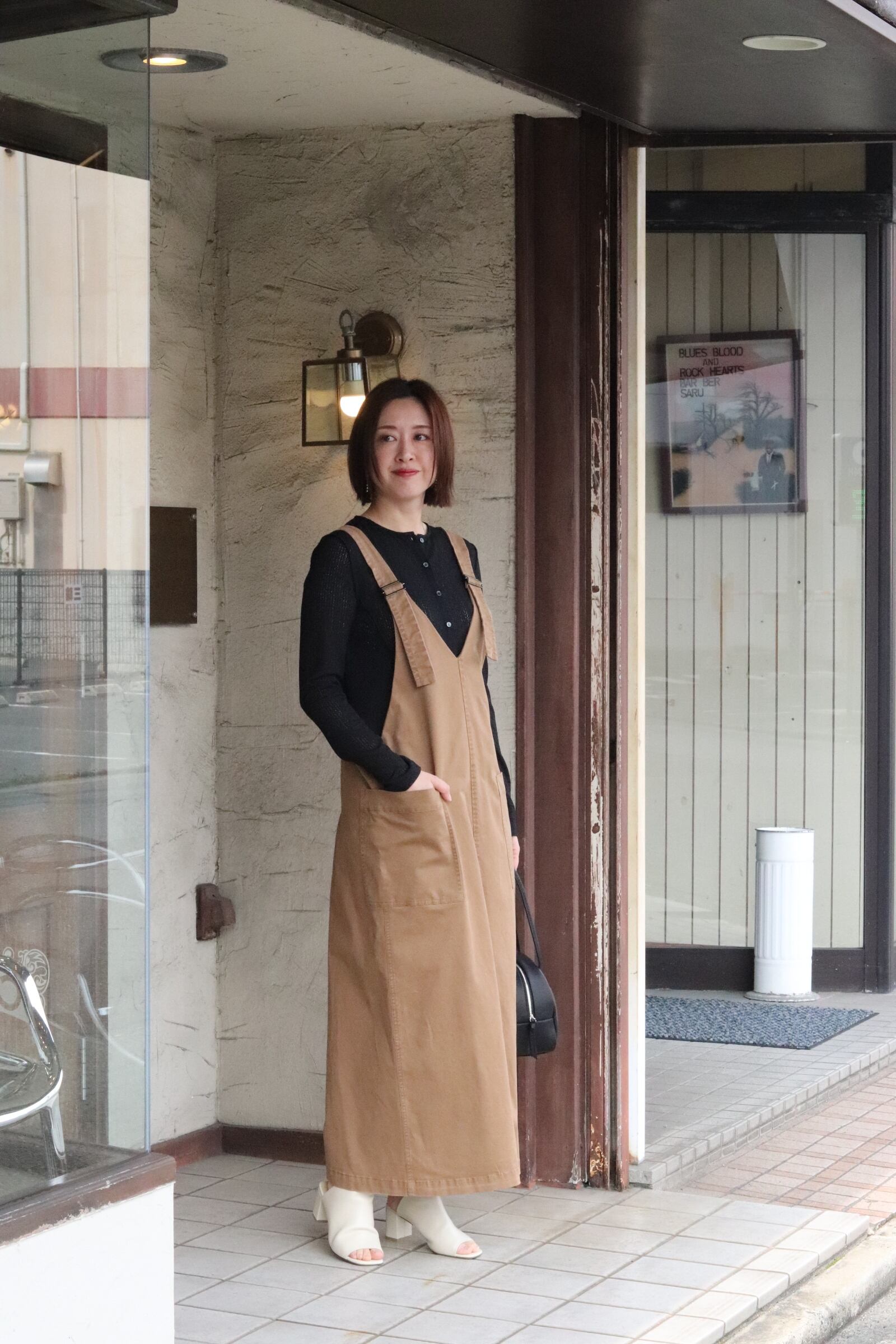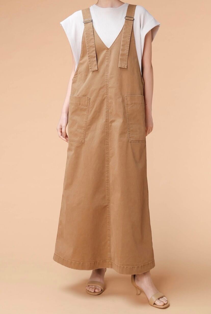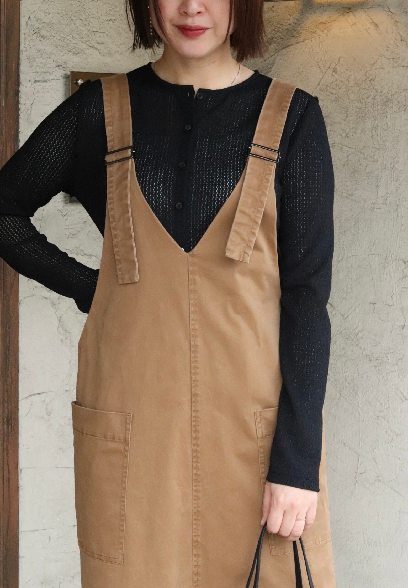 チノ素材にバイオ加工を施した生地を使用したジャンバースカート。