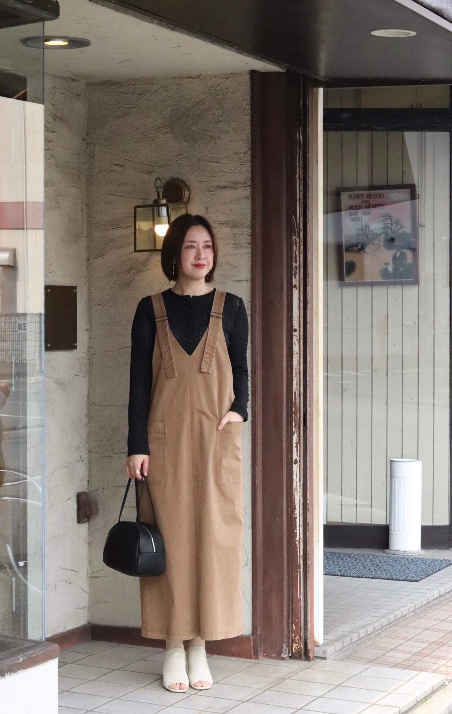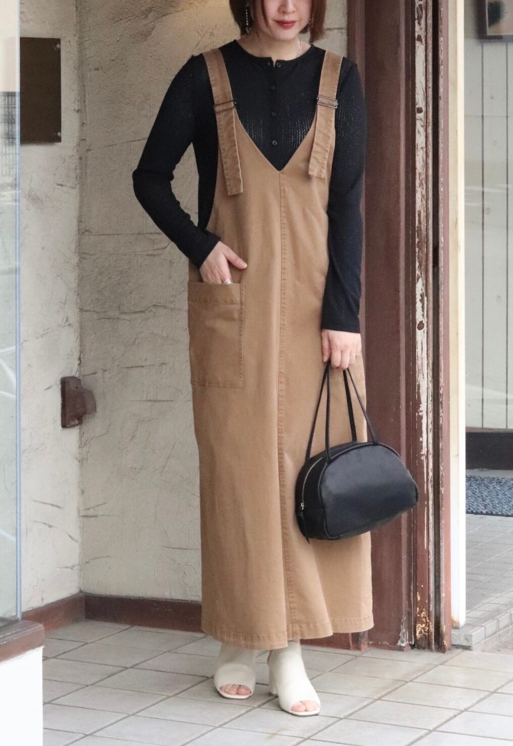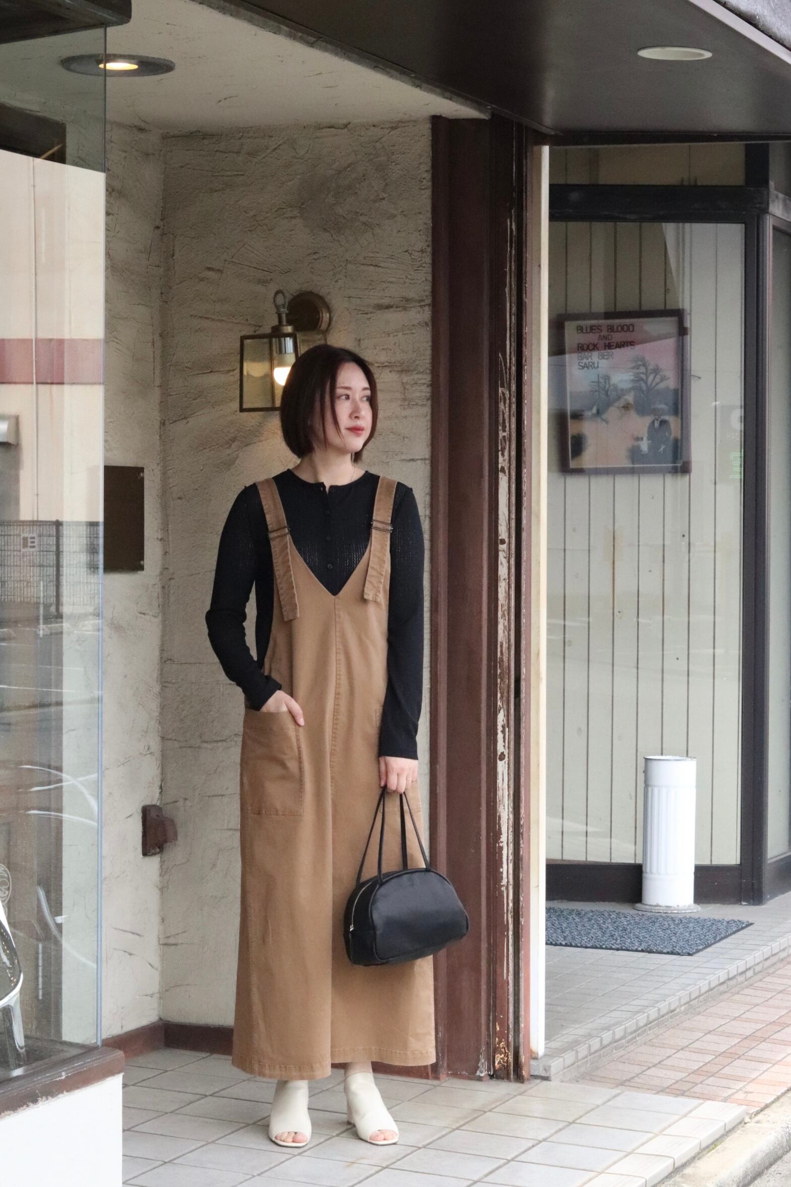 チノ素材にバイオ加工を施した生地を使用したジャンバースカート。
