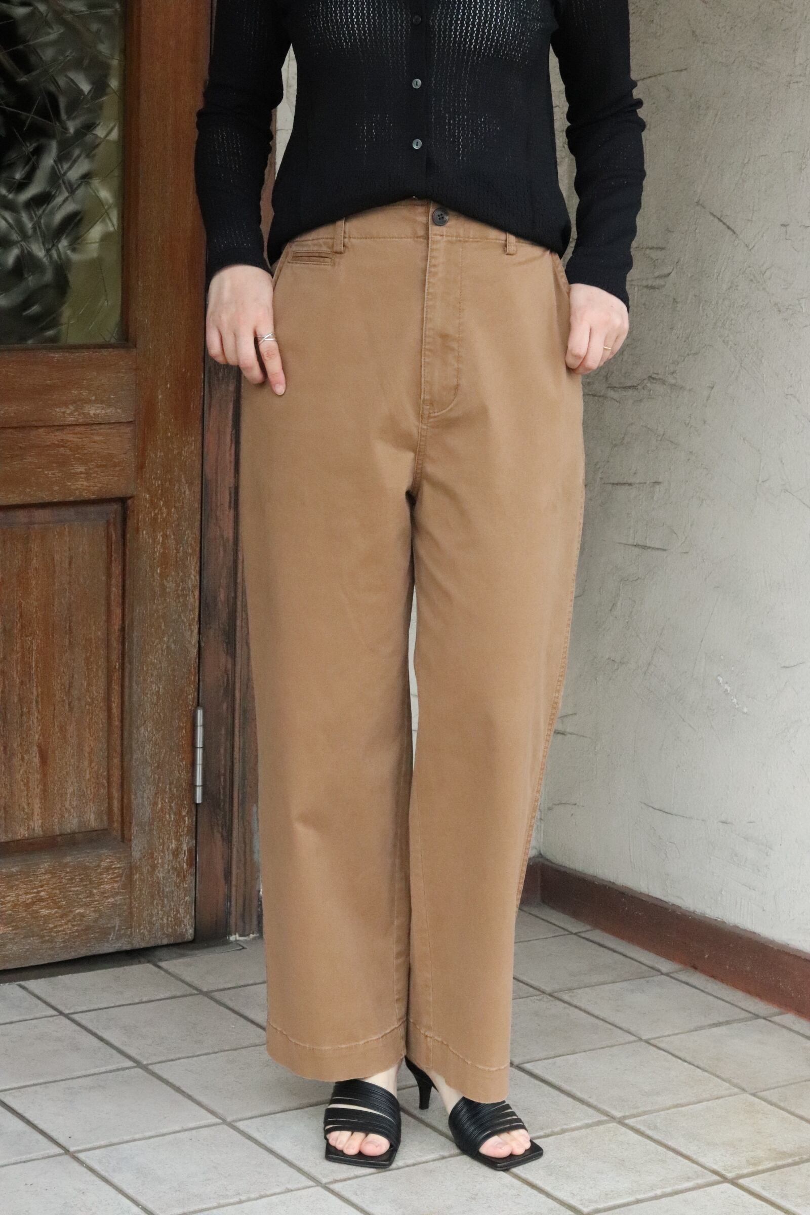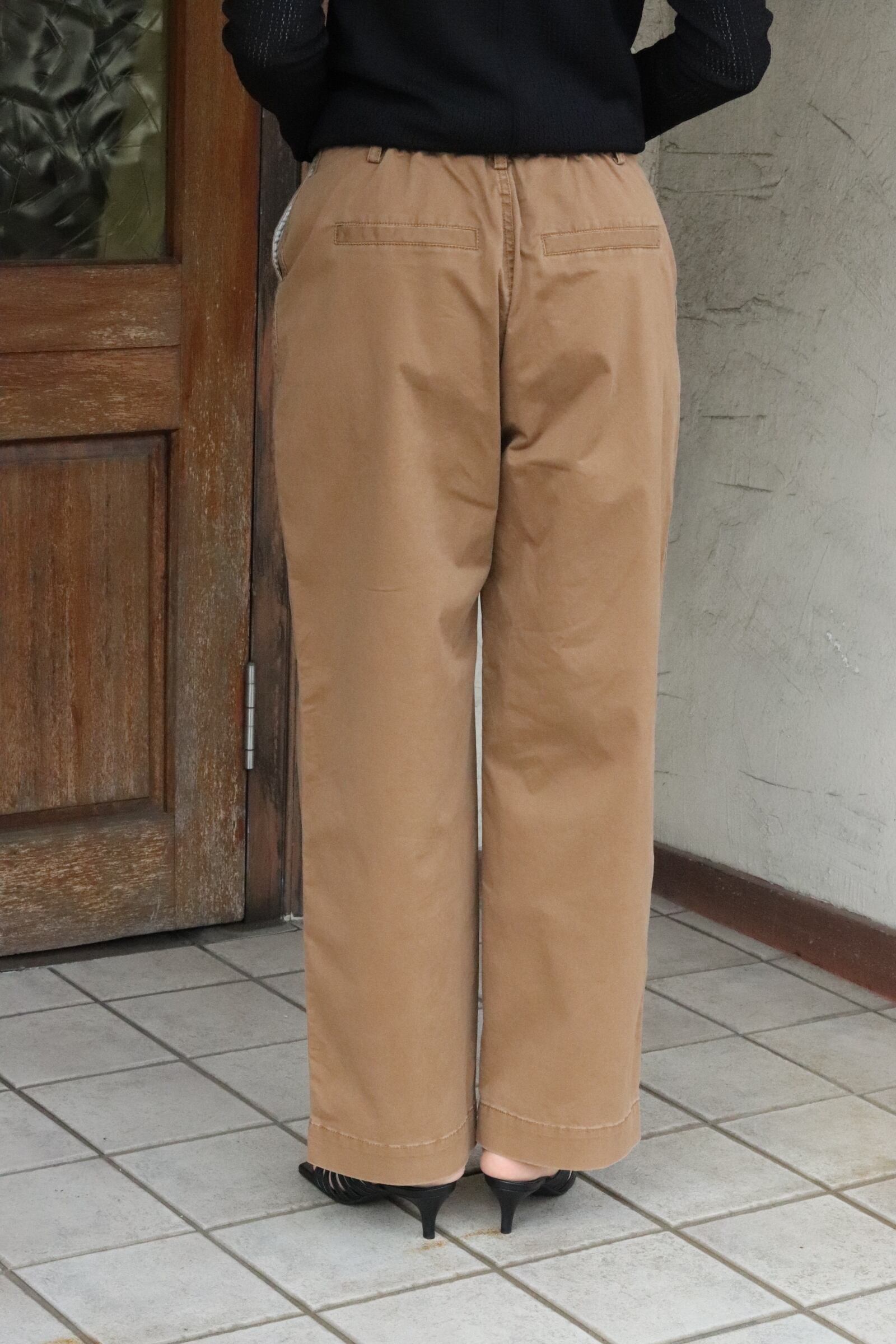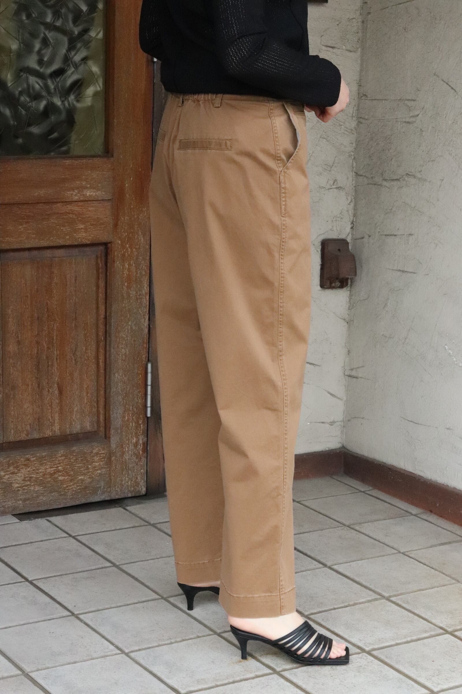 チノ素材にバイオ加工を施した生地を使用したセミワイドパンツ。