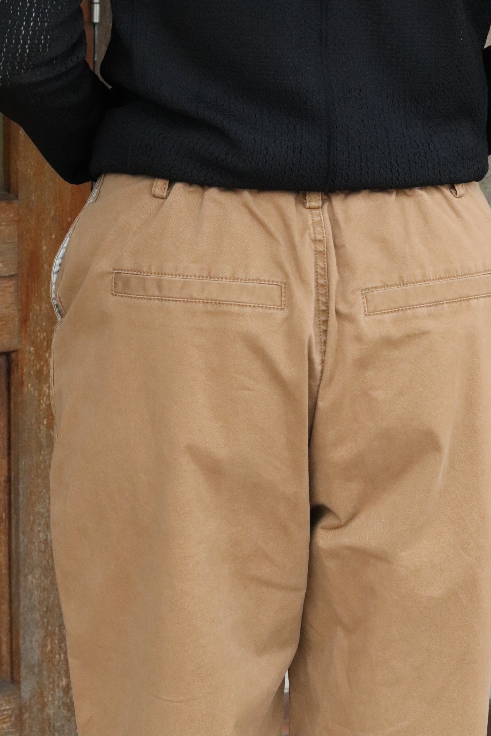 ほどよいハリ感と、やわらかくこなれた風合いのチノバイオ生地。