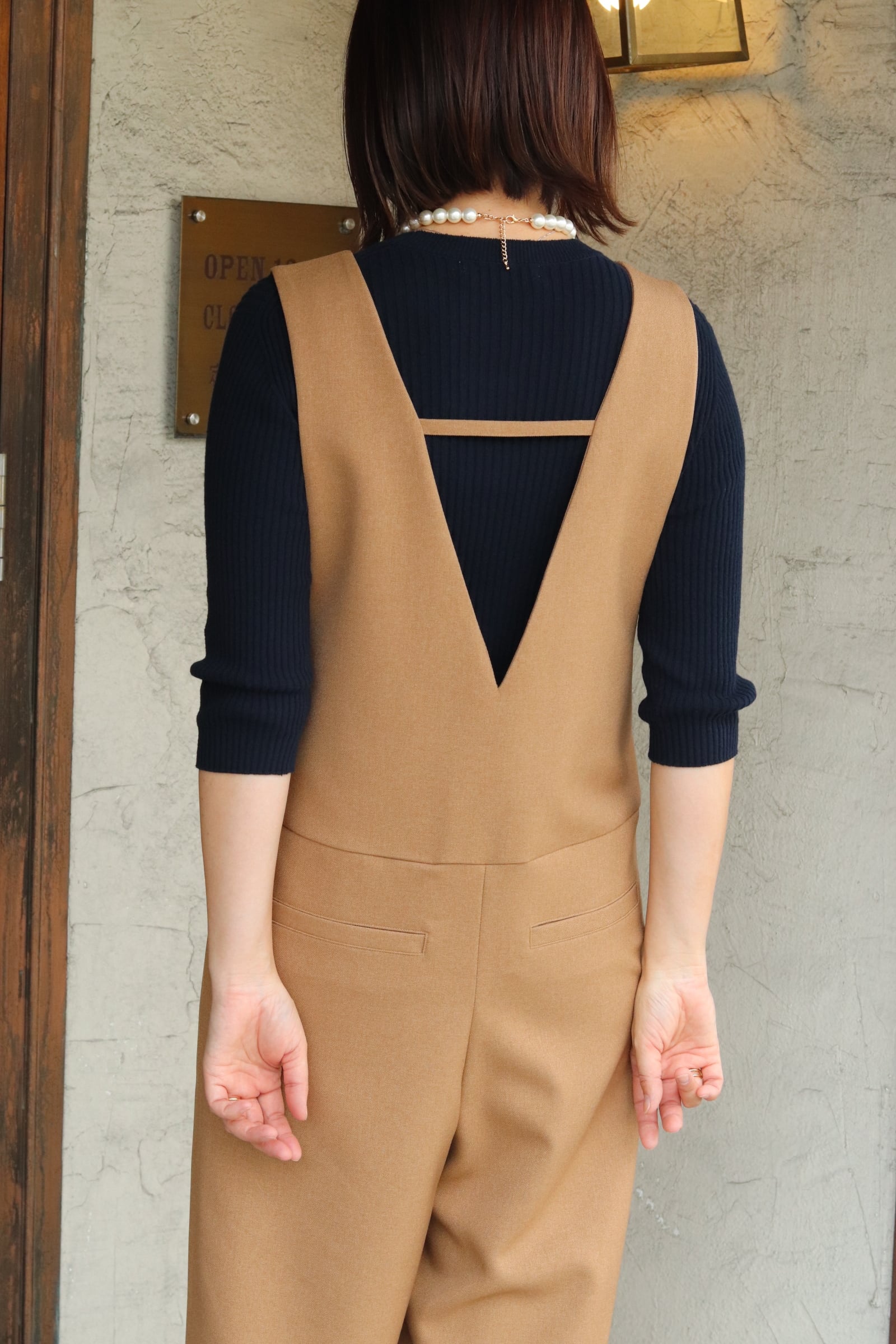 シンプルで何にでも合わせやすい定番デザインのツイルサロペット。